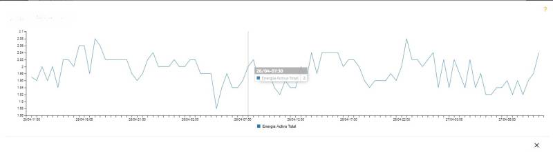 In this graph we can visualize the consumption of the selected electrical variables and in the selected period of time.