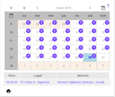 1.- Sobre el calendario aparece un número dentro de un redondel de color morado que nos indica el número de instalaciones operativas esa fecha.